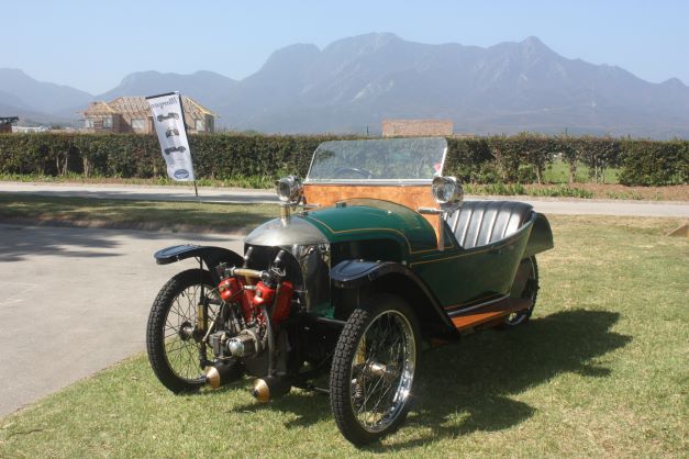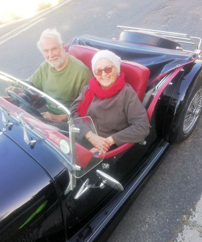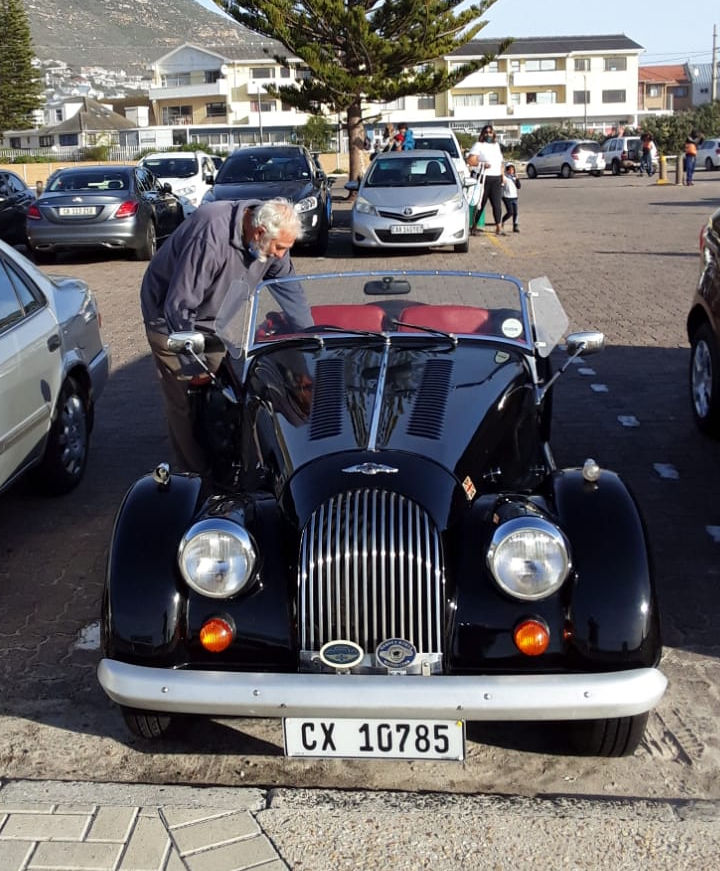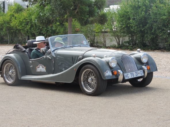 Morgan 4/4 1984 : Derek and Anne Law. This car was bought new and collected personally from the factory in 1984 after a long wait by the late Godfrey Gericke of PE- well known Triumph sports car collector. Just before Godfrey passed away he sold it to Peter Truter of the Crankhandle Club who, when downsizing, sold it on to Derek. It is a low mileage, well cared for Mog.